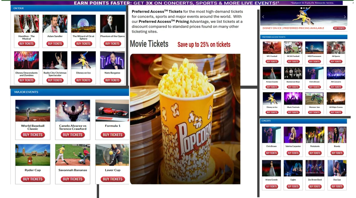 That includes wholesale travel (resorts, hotels, cruises, tours), entertainment discounts (concerts, sports, theme parks), lifestyle savings (groceries, dining, shopping), and loyalty rewards on everything you spend.